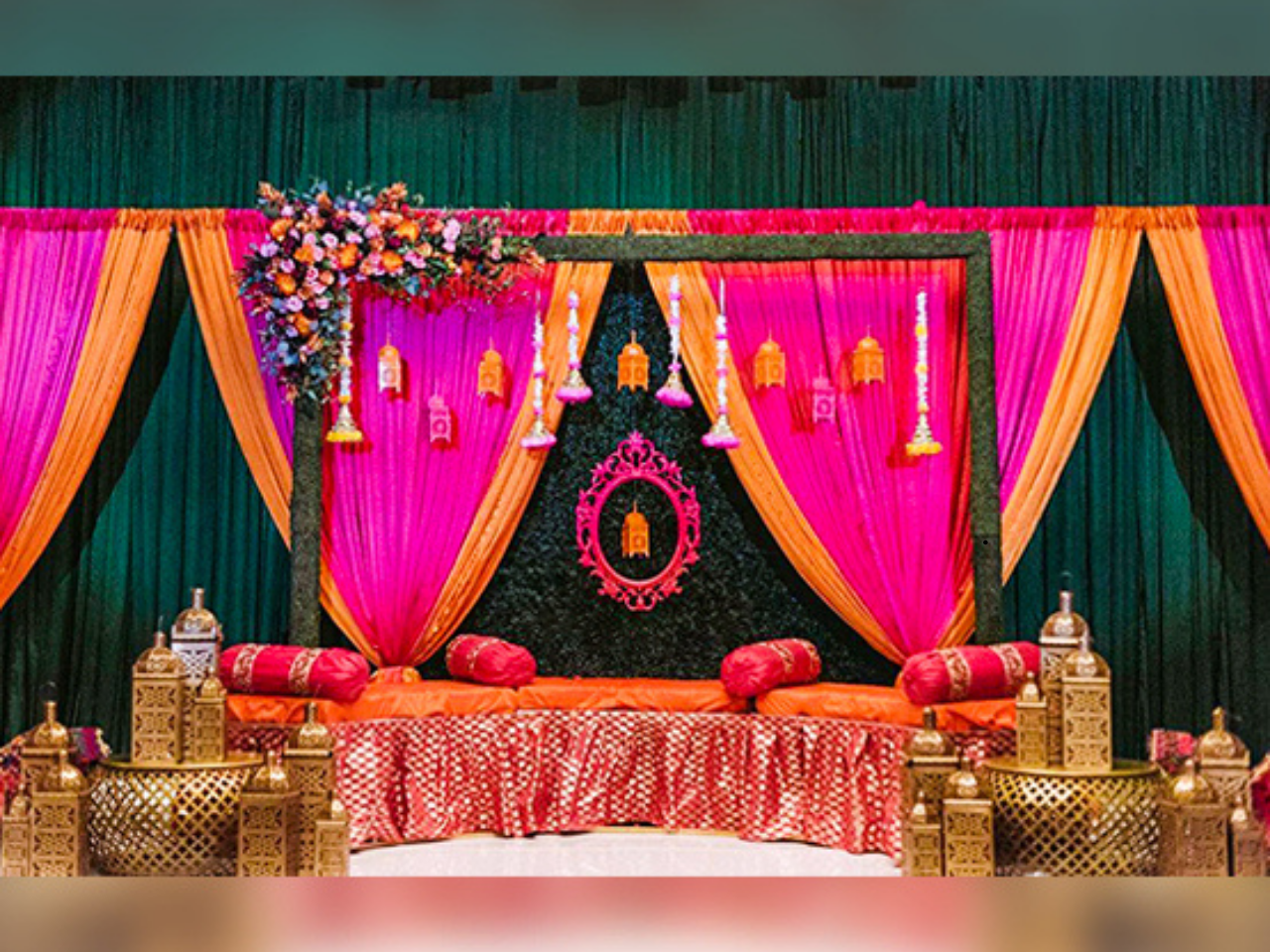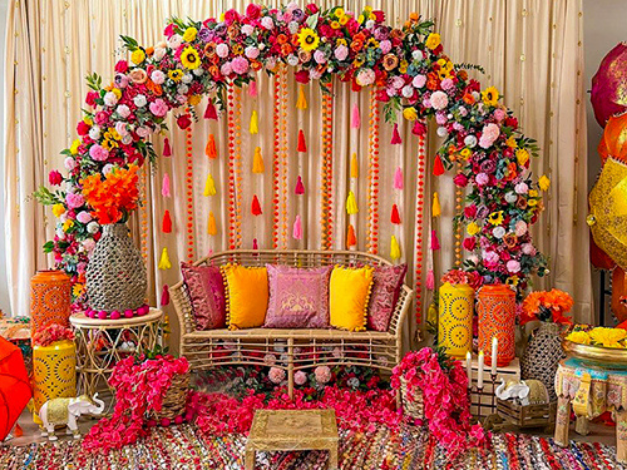 Haldi & Mehendi stage setup with vibrant, cultural touch